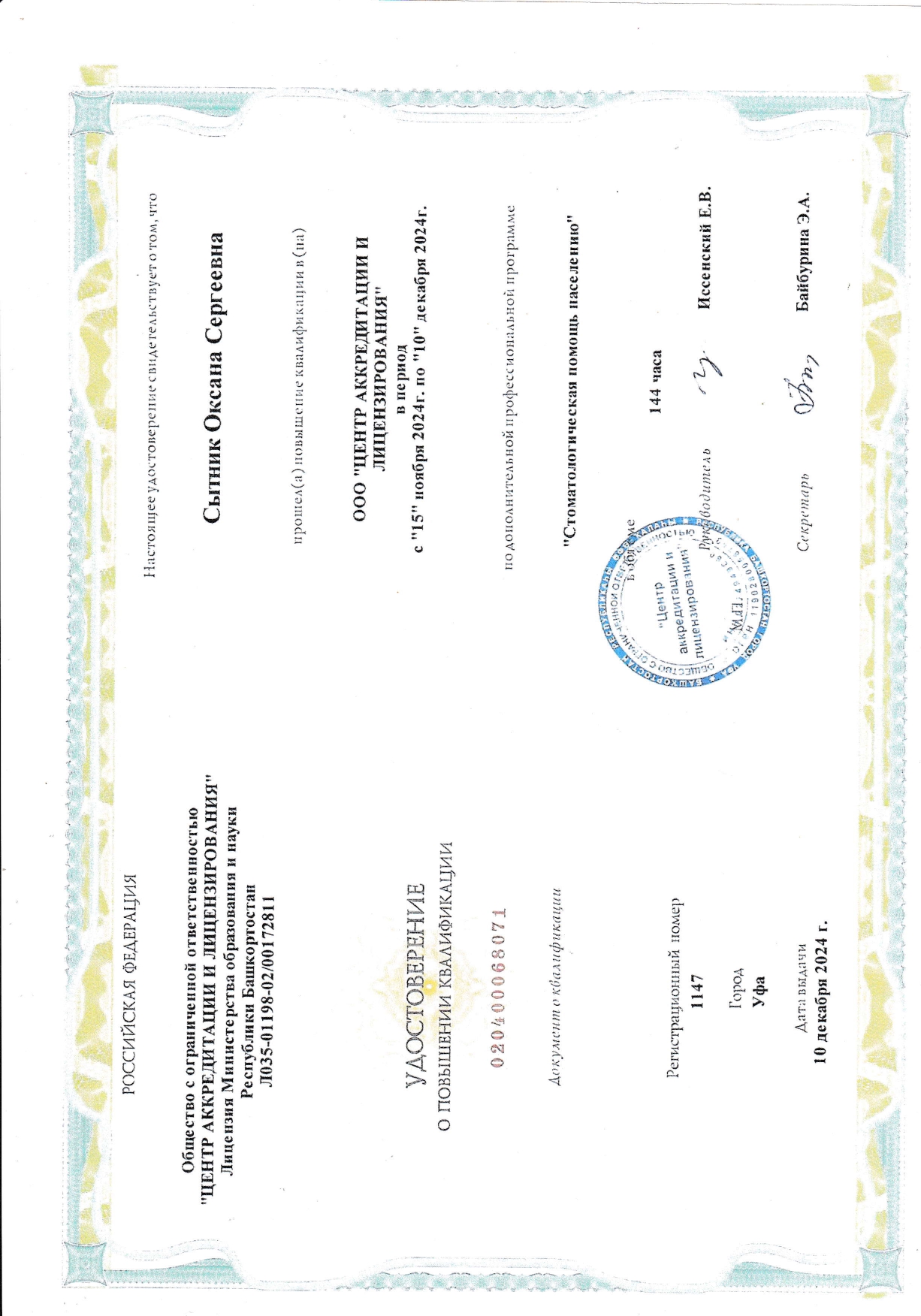 Генеральный директор, зубной врач Сытник Оксана Сергеевна